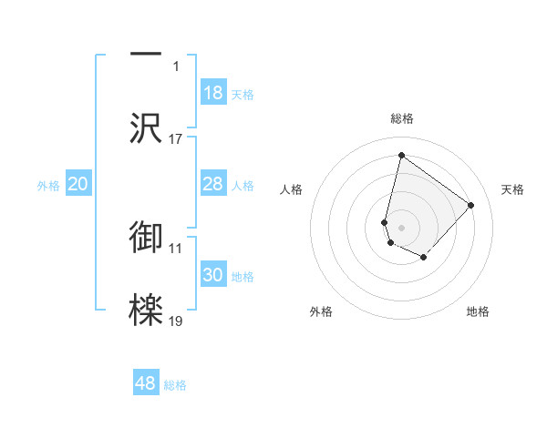 一沢 御檪さんの総格は48画の4点!
