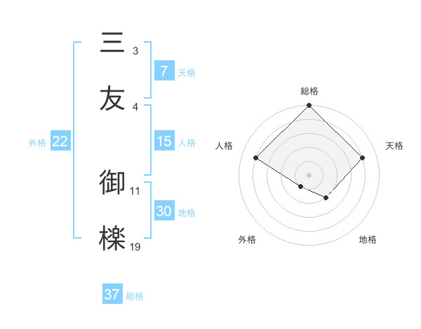 三友 御檪さんの総格は37画の5点!
