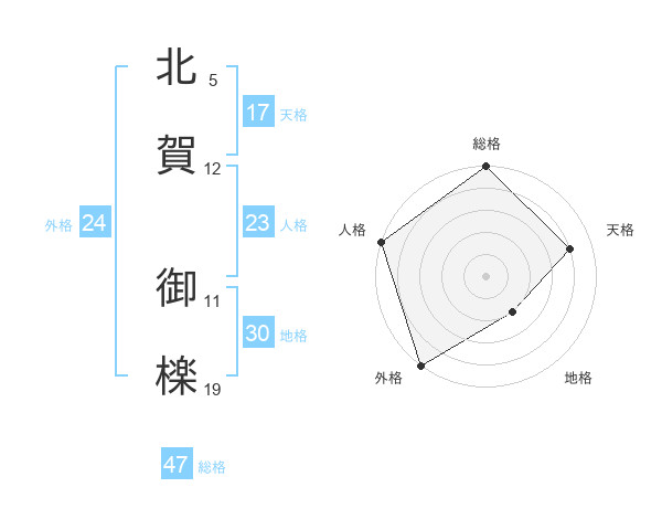 北賀 御檪さんを姓名の画数から五運を鑑定