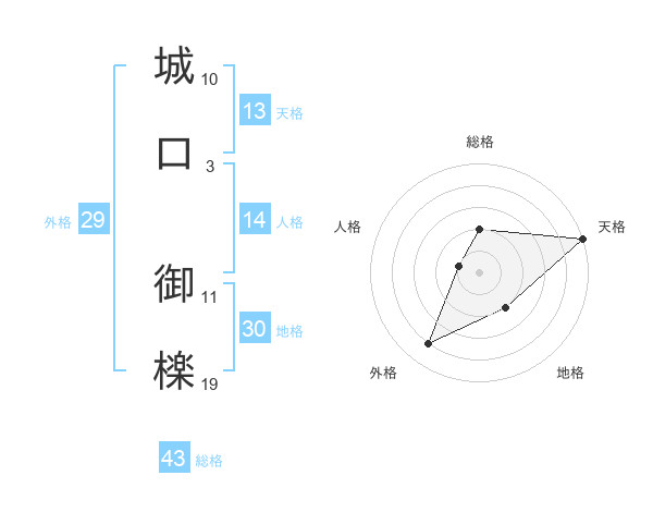 城口 御檪さんの総格は43画の2点!