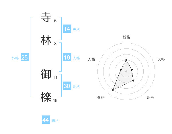 寺林 御檪さんの総格は44画の2点!