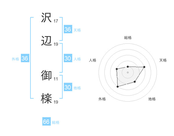 沢辺 御檪さんを姓名の画数から五運を鑑定