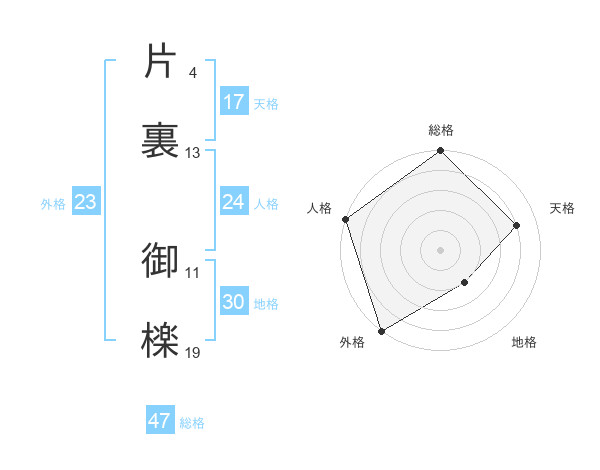 片裏 御檪さんを姓名の画数から五運を鑑定
