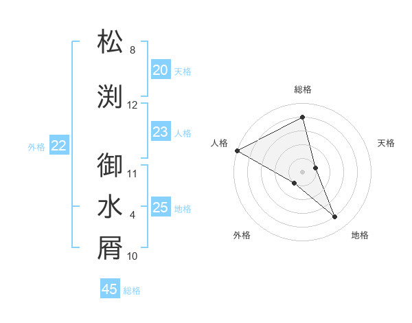 松渕 御水屑さんの総格は45画の4点!