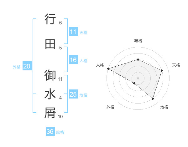 行田 御水屑さんを姓名の画数から五運を鑑定