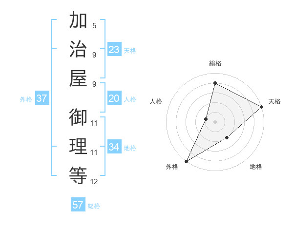 加治屋 御理等さんの総格は57画の4点