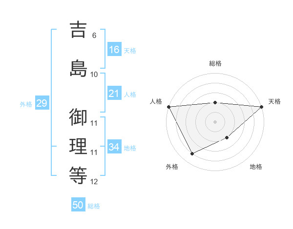 吉島 御理等さんの総格は50画の2点!