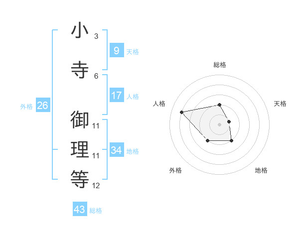 小寺 御理等さんを姓名の画数から五運を鑑定