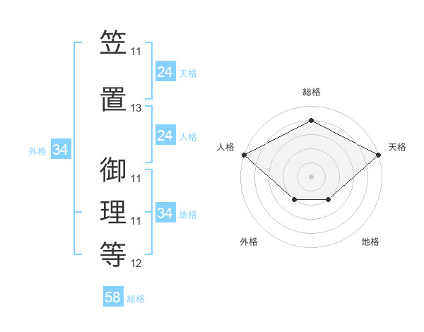 笠置 御理等さんを姓名の画数から五運を鑑定