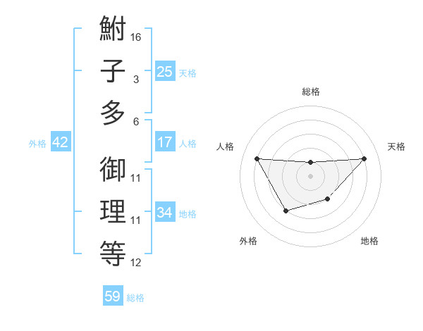 鮒子多 御理等さんを姓名の画数から五運を鑑定