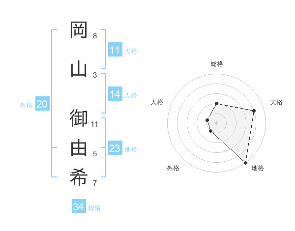 岡山 御由希さんを姓名の画数から五運を鑑定