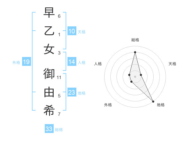 早乙女 御由希さんを姓名の画数から五運を鑑定