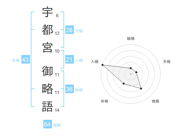 宇都宮 御略語さんを姓名の画数から五運を鑑定