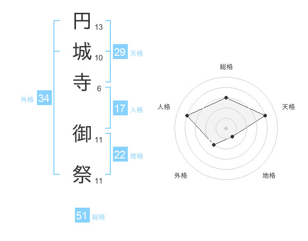 円城寺 御祭さんの総格は51画の3点!
