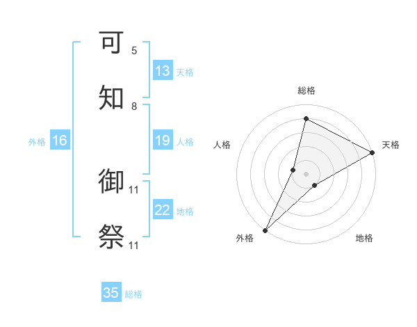 可知 御祭さんの天格は13画の5点!