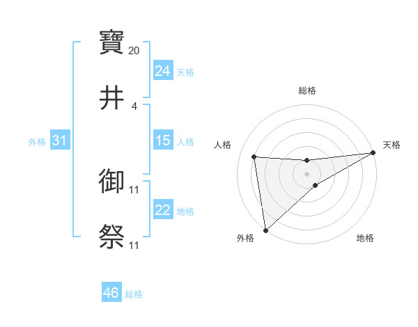 寶井 御祭さんの天格は24画の5点!