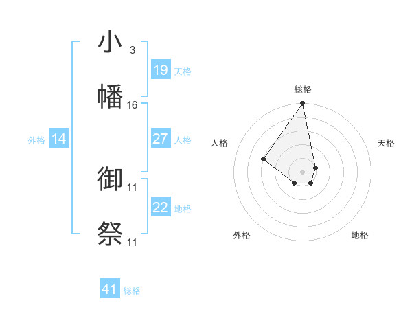 小幡 御祭さんを姓名の画数から五運を鑑定