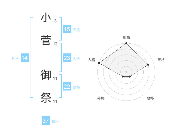 小菅 御祭さんの総格は37画の5点!
