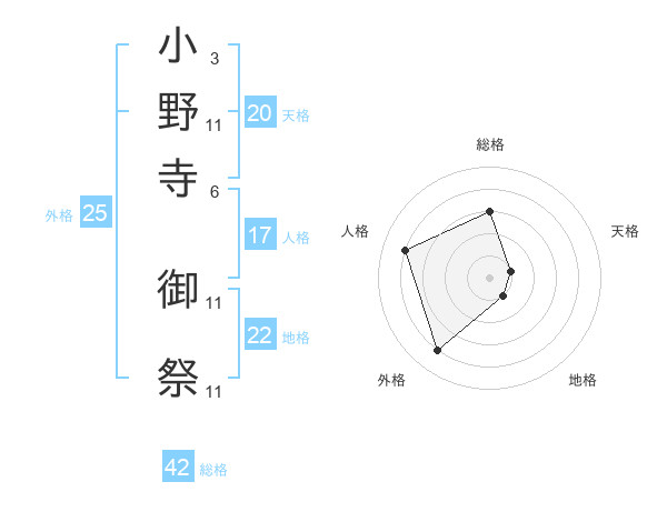 小野寺 御祭さんの天格は20画の1点!