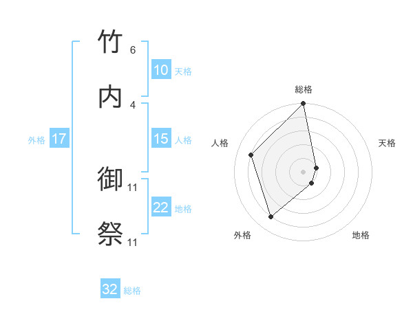 竹内 御祭さんの総格は32画の5点!