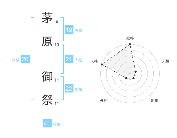 茅原 御祭さんの総格は41画の5点!