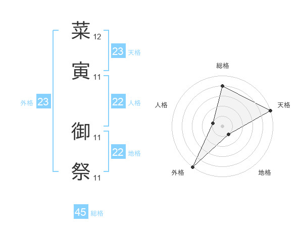 菜寅 御祭さんを姓名の画数から五運を鑑定