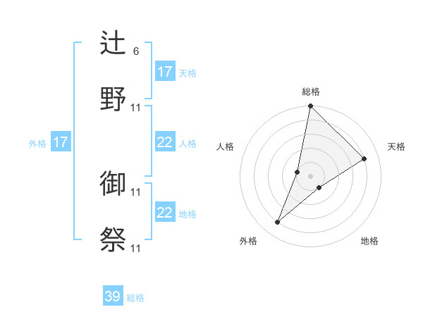 辻野 御祭さんの総格は39画の5点!