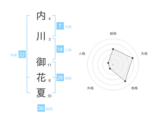 内川 御花夏さんの天格は7画の4点!