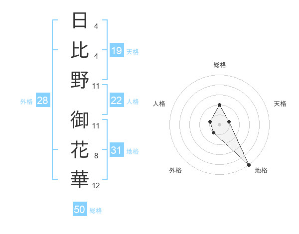 日比野 御花華さんを姓名の画数から五運を鑑定