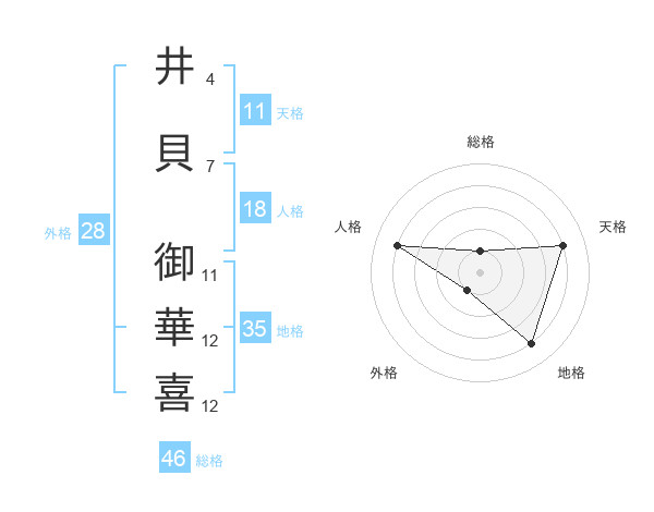 井貝 御華喜さんを姓名の画数から五運を鑑定