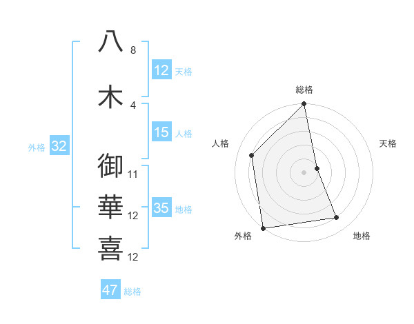 八木 御華喜さんの総格は47画の5点!