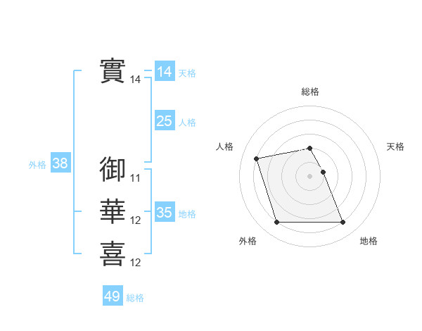 實 御華喜さんの外格は38画の4点!