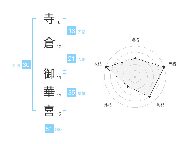 寺倉 御華喜さんを姓名の画数から五運を鑑定