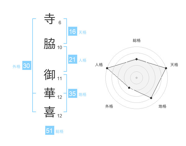 寺脇 御華喜さんの総格は51画の3点!