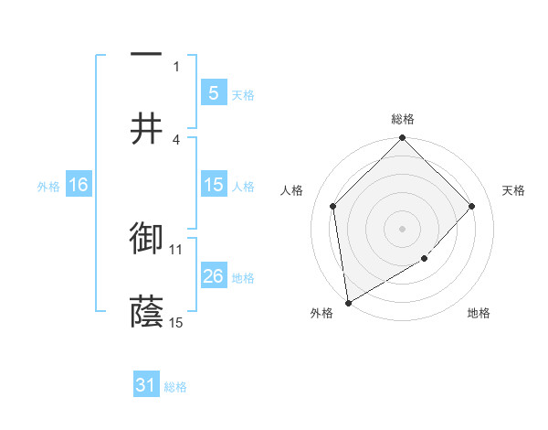 一井 御蔭さんを姓名の画数から五運を鑑定