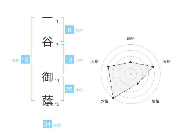 一谷 御蔭さんの外格は16画の5点!