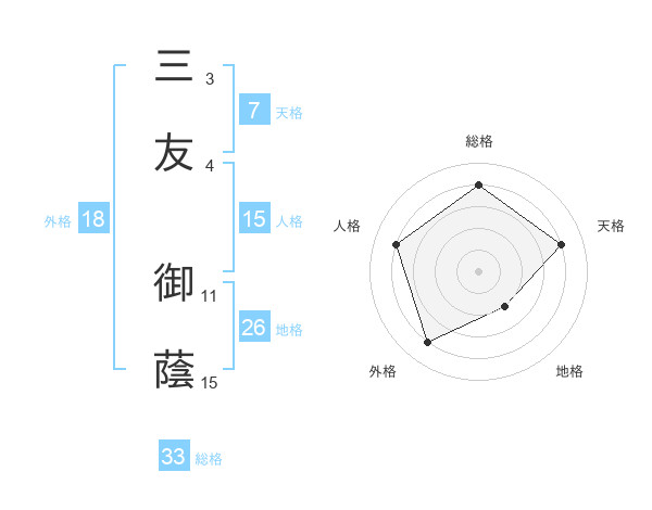 三友 御蔭さんを姓名の画数から五運を鑑定