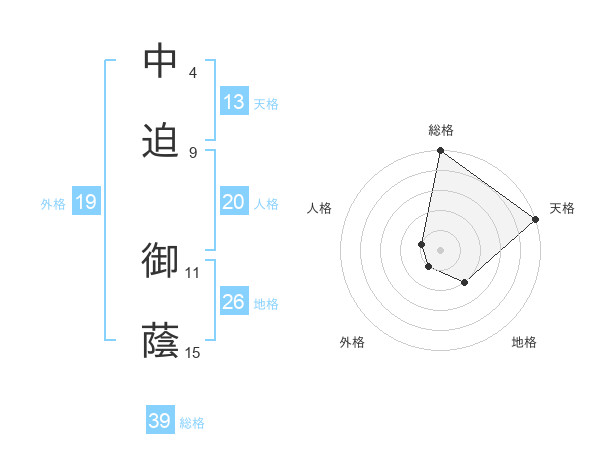 中迫 御蔭さんの総格は39画の5点!