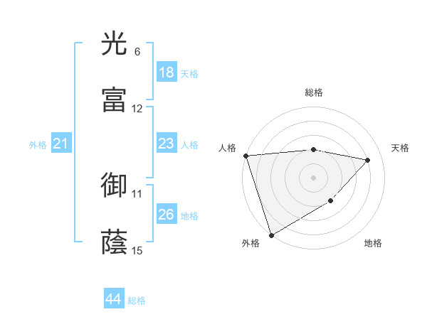 光富 御蔭さんを姓名の画数から五運を鑑定