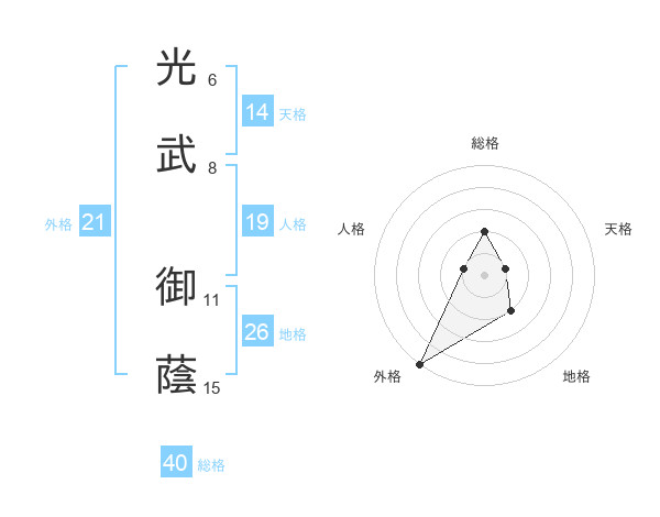 光武 御蔭さんの外格は21画の5点!