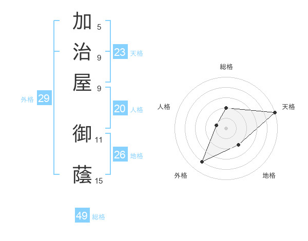 加治屋 御蔭さんを姓名の画数から五運を鑑定