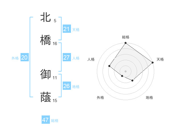 北橋 御蔭さんの総格は47画の5点!