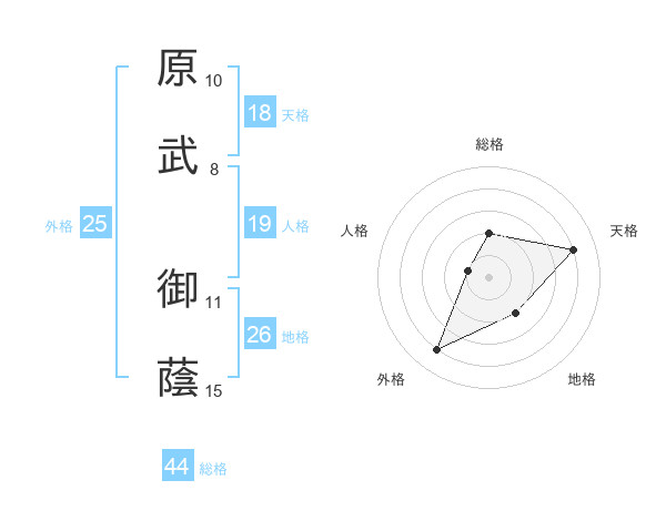 原武 御蔭さんの総格は44画の2点!