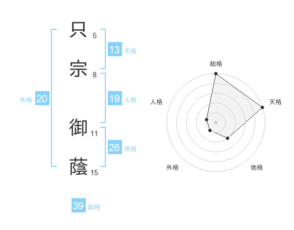 只宗 御蔭さんを姓名の画数から五運を鑑定