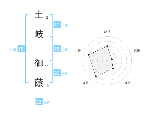 土岐 御蔭さんの総格は36画の3点!