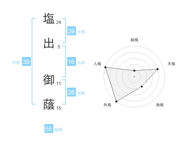 塩出 御蔭さんの総格は55画の1点!