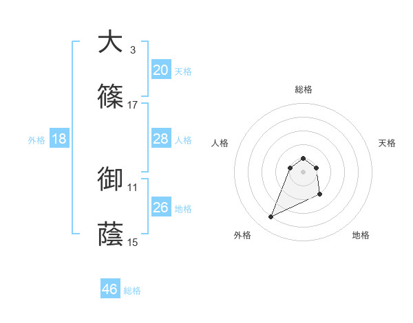 大篠 御蔭さんを姓名の画数から五運を鑑定