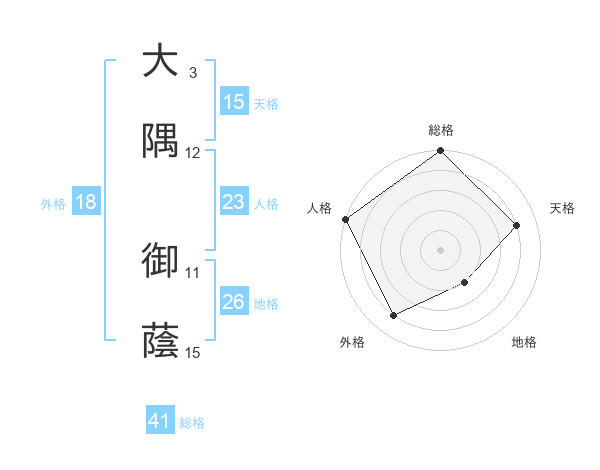 大隅 御蔭さんの外格は18画の4点!