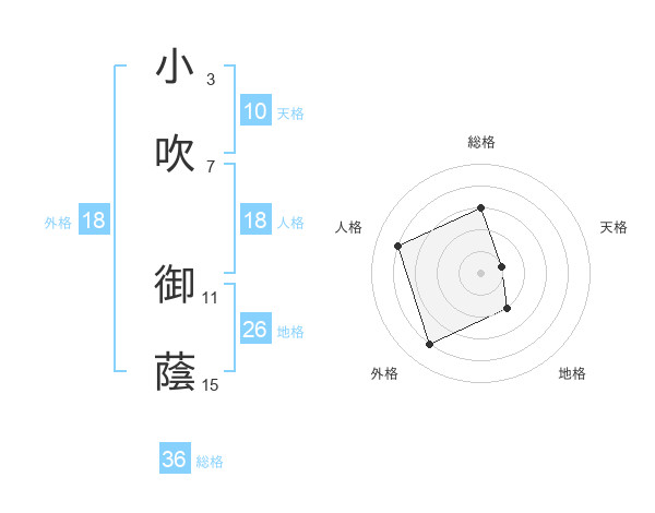 小吹 御蔭さんの外格は18画の4点!