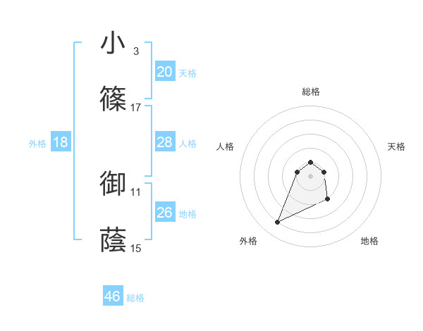 小篠 御蔭さんの天格は20画の1点!